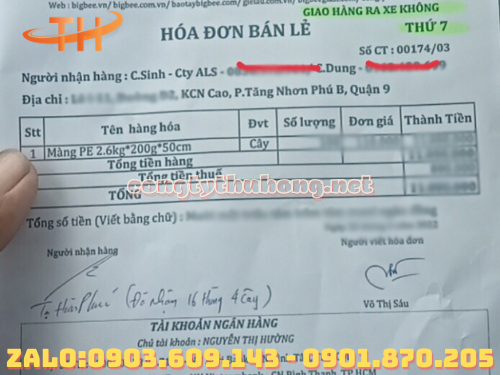 Miễn phí giao hàng màng pe cho khách hàng tại Tăng Nhơn Phú B, Quận 9